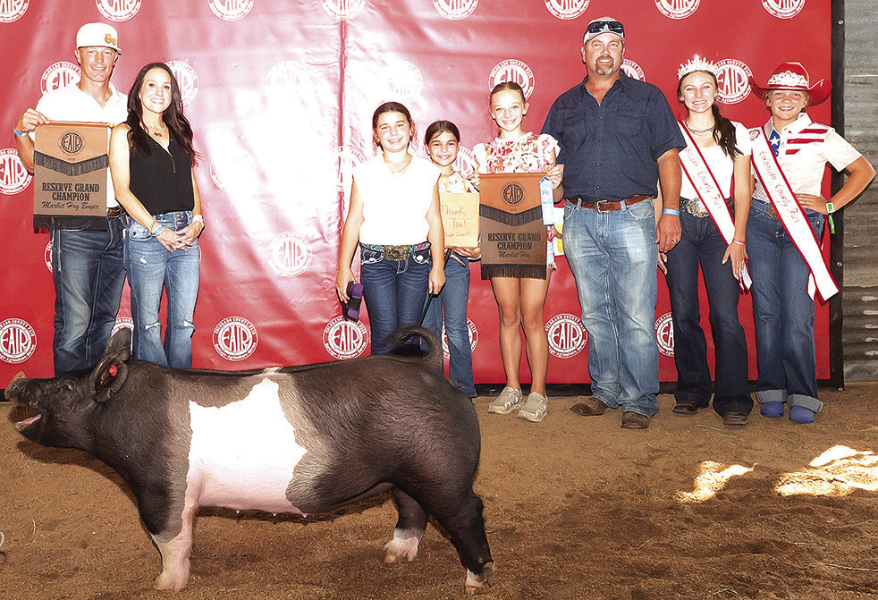 Taylor Glueck exhibited the reserve champion market hog that was purchased for $4,750 by American Ag LLC and Nelson Earthworks.