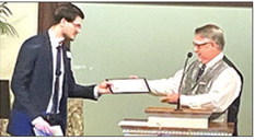 Colorado County Baptist Association Executive Director of Mission Barry Barnet, right, presented First Baptist Church Rev. Joshua Turpin with a certificate of recognition of church’s 150 years of continuing Christian ministry to the city and community of Eagle Lake. Banner Press photo by Ramona Ferguson