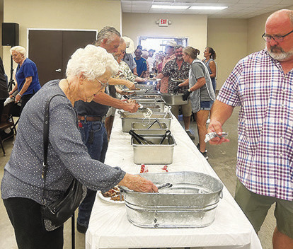 St. Roch Catholic Church 171st annul Mentz picnic was held Oct. 5. The meal of barbecue beef, pork and sausage did not disappoint the continuous line of picnic-goers as the meats were done to perfection. The sides were equally delicious, especially the pickled onions. Photo by Lily Jones