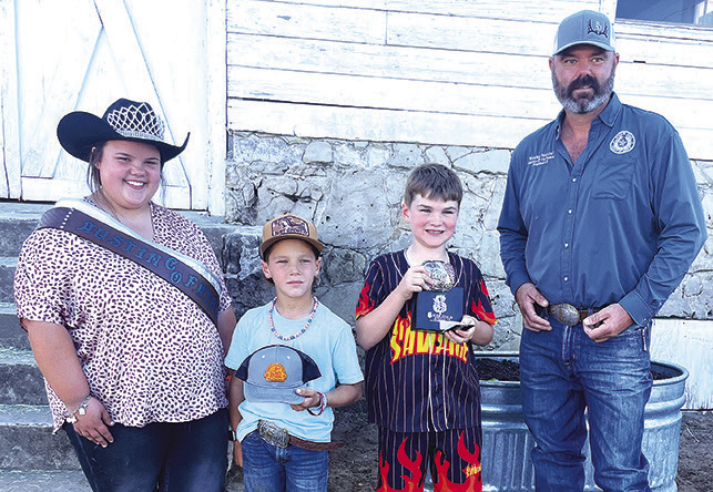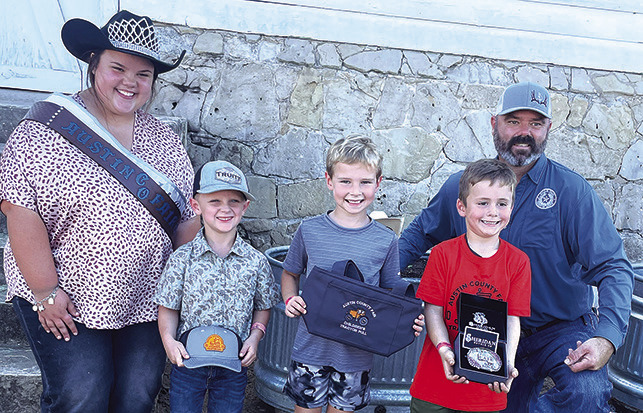 Winners in the Children’s Tractor Pull 5 and 6 Year-Old Division on Oct. 12 at the Austin County Fairgrounds in Bellville were, front row, from left, Truitt Gangl, third place; Cross Cook, second place; and J.T. Hobbs, first place. On hand for the presentation was 2025 Austin County Fair Queen Darcy Luedke and Wesley Peschel, Austin County JP Precinct 2.Winners in the Children’s Tractor Pull 7 and 8 Year-Old Division on Oct. 12 at the Austin County Fairgrounds in Bellville were, front row, from left, Armor Lischka, third place; and August Pickering, first place. On hand for the presentation was 2025 Austin County Fair Queen Darcy Luedke and Wesley Peschel, Austin County JP Precinct 2. Not pictured was second place winner Hudson Huebner.