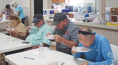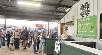 If rodeo action is not your thing, the carnival rides certainly are during the Austin County Fair Oct. 8-12 in Bellville. Numerous rides and lots of food vendors with all types of tantalizing tidbits tempted the throngs of people who show up every year as the event keeps getting bigger and better. Photo by Ramona Ferguson, Banner PressThe famous Austin County 4-H burgers at the Austin County Fair and Rodeo kept many fair and rodeo goers full and happy. Photo by John Jones, Banner PressIt’s what you call the “money shot” as one team out of many teams came together to out-barbecue one another during the Austin County Fair in October. Photo by John Jones, Banner PressSomeone has to judge all the great-tasting barbecue coming through the doors during the Austin County Fair and Rodeo. Judges, from left, Jennie Fitch, Allen Kaminski, William Supak and Casey Klores sample the chicken entries. Photo by John Jones, Banner PressGrand champion floral design by Trinity Melnar during this year’s Austin County Fair. Photo by John Jones, Banner Press