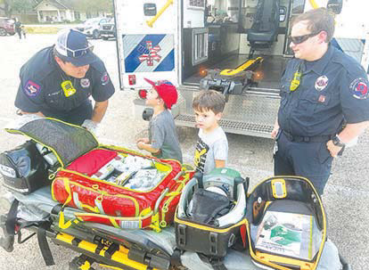 The National Night Out, held on Oct. 7, had communities coming together to foster goodwill and get to know your neighbor. The Ellinger Volunteer Fire Department, along with other entities such as the Fayette County Sheriff's Office and the Fayette County EMS, met with the local communities. The little ones at the Ellinger event were all ears, learning about all the apparatus on a fire truck. Photo by John Jones, Banner PressColumbus held its National Night Out on Oct. 7 and everyone got together to spend a little time getting to know one another. The Colorado County EMS shows some kiddos its equipment. The Columbus PD, Fire Department and a host of others gathered alongside. Photo by John Jones, Banner Press