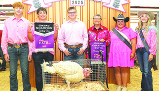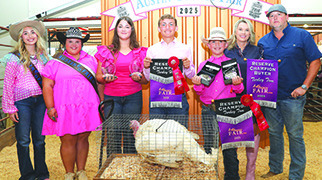 Blake Brending exhibited the grand champion turkey hen that was purchased for $7,500 by Lawerence Sitka and Accurate Meter and Supply.
