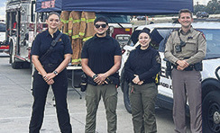 A group of heroes, who don't see themselves as such, gather at Tractor Supply in Colum - bus, as many heroes are doing around the country, to meet and greet the community in which they serve. At the Trac - tory Supply in Columbus Oct. 1, were, from left, CVFD Anna Schultz, CCSO Deputy Jessie Lopez, CCSO Deputy Nan - cy Gorman and DPS Trooper Austin Latta. Photo by John Jones, Banner Press