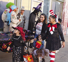 No fear - only fun shown in the eyes of Juliette Samaniego, front, and Zoe Samaniego, center, while surrounded by tricksters during the Eagle Lake Trick or Treat on the Square on Oct. 30. Side note: The man on the right is Tink Jackson, Eagle Lake city manager, wearing his casual Friday attire.