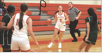 Bellville guard Brielle Hranicky, 2, takes the ball to the wing and looks to make a play. Banner Press photo by Brian Pierson
