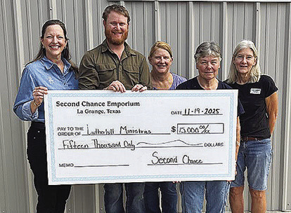 Second Chance Emporium (SCE) recently donated $15,000 to Lutherhill Ministries. Monies donated will be used to fund a camp-wide P/A system, two-way radios for the staff, NOAA weather radios and a satellite communications device/backup power system. Lutherhill Ministries provides a ministry for all people of every generation to experience the love of Christ in unique settings and new ways while being in a safe and joyful environment. On hand for the presentation include, from left, Anne Liddle, Lutherhill Ministries director of development; Russell Dittrich, Lutherhill Ministries director of operations; Marlene Schnell, SCE assistant store director; Darlene Strahan, SCE assistant store director and Gayle Schielack, SCE store director.
