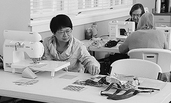 CVQG member Grace Sim pieces together blocks for charity quilts that will go to nursing facilities during its annual Charity Quilt Workshop in La Grange.