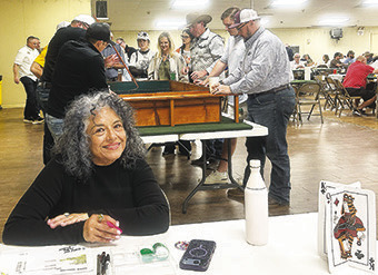 Lisa Elmos, the better half of Sealy KC member Joe Elmos, greets guests coming into the annual Casino Night fundraiser for the Sealy Knights of Columbus, held Feb. 7 at the Columbus Hall in Sealy. Tables in the back- ground are already filled with players. Serious play and a lot of laughter keep this event as one of the community's favorites. Photo by John Jones, Banner PressThe card tables filled quickly with groups coming in and putting it all on the line during the annual Sealy KC Casino Night on Feb. 7 at the Columbus Hall in Sealy. There is always next year to try out your luck. Photo by John Jones, Banner Press