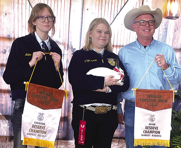 McKayla Kahlden exhibited the reserve champion fryer rabbit that was purchased for $1,500 by HATS Buyers Group (Cavender Auto Country, Weimar Meat Company, Texas Irrigation & Pipe, Van Houten Medical Clinic, and Don Richardson).