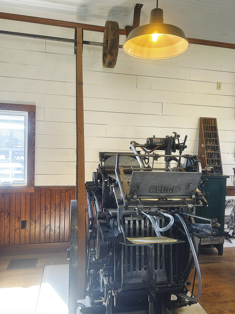 This Kluge Press, circa 1869, was donated to the TCH - CC in 2001, and is typical of this printer in newspaper offices. The belt coming off the printing press leads to a 6-horse power vertical gasoline engine manufactured in 1908. The printing press and engine is located in the TCHCC Newspaper Office Museum in La Grange during the Blacksmithing and Antique Gas Engine event. Photos by John Jones Banner Press