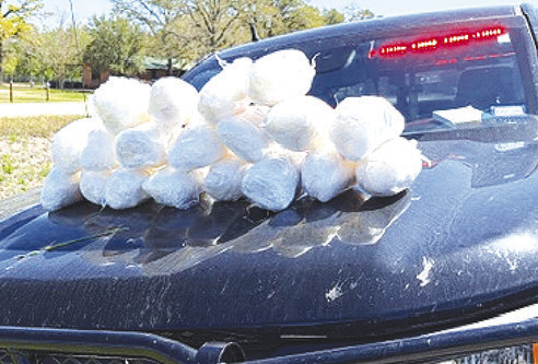 Stacks of bundles of meth sit atop the Interdiction patrol vehicle after being seized by FCSO Interdiction Investigator David Smith on March 20 near La Grange. Photo by FCSO