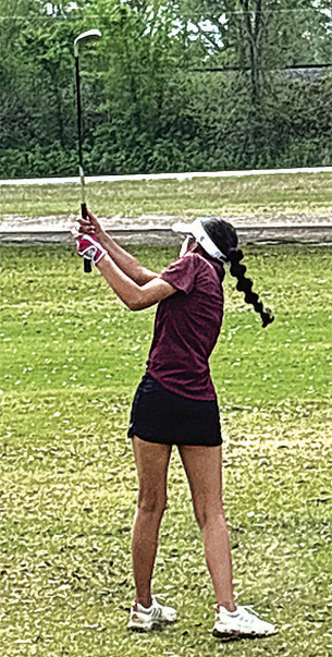 Flatonia golfer Hailey Olvera makes a swing at an approach shot.